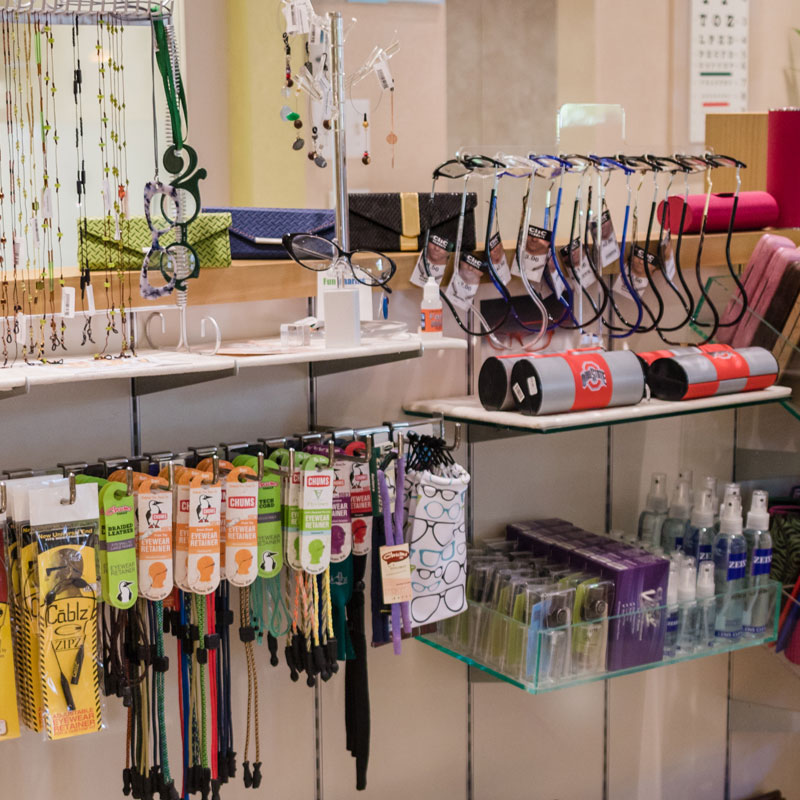 We have all the necessary accessories for your eyewear, including some fun, different options you probably didn’t know existed. We carry everything from makeup magnifying glasses and eyeglass charms to floaters that keep your glasses visible if you drop them in the lake.